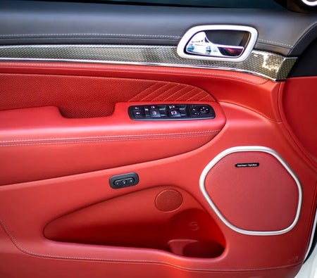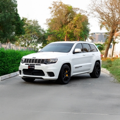 The جيب Grand Cherokee Trackhawk دفع رباعي مُدرجة من قبل شركة ايه كلاس موتورز لتجارة السيارات المستعملة ذ.م.م. - 4 أبواب دفع رباعي تتسع لـ 8 ركاب و 2 حقيبة (حقائب) متوسطة الحجم.