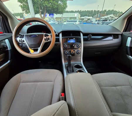 Ford Edge ist ein erstaunlich fähiger Crossover. Sein standardmäßiger 3,5-Liter-Ti-VCT-V6-Motor leistet 285 PS und verbraucht nur 8,7 Liter/100 km auf der Landstraße, sodass Sie jede Fahrt optimal nutzen können. Der Ford Edge bietet Ihnen die revolutionäre, brandneue, verfügbare MyFord Touch Driver Connect-Technologie – angetrieben von der neuesten Version unseres preisgekrönten Ford SYNC®-Systems, mit dem Sie Anrufe tätigen und entgegennehmen und Musik auswählen können, alles mit Sprachbefehlen. Platz ist eine gute Sache. Vor allem auf der Autobahn. Der adaptive Tempomat und die Kollisionswarnung mit Bremsunterstützung verwenden Radarsensoren, um Ihnen dabei zu helfen, einen von 4 voreingestellten Abstand zwischen Ihrem Edge und dem Fahrzeug vor Ihnen einzuhalten. Es verwendet auch dieselben Frontsensoren, um Sie vor einer möglichen Kollision zu warnen. Wenn eines erkannt wird, blinkt eine Warnung über Ihre Windschutzscheibe und ein Alarm ertönt, sodass Sie mehr Zeit haben, die Bremsen zu betätigen. Mieten Sie Ford Edge Dubai bei allen führenden Autovermietungen hier.