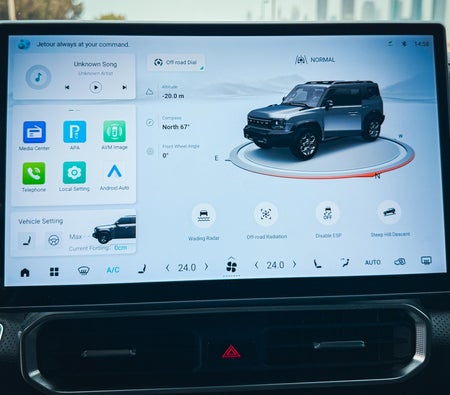 Rent and Drive this Jetour T2 2024-model in Dubai, UAE  for USD 54/day & USD 1360/month. Rental cost includes basic comprehensive insurance and standard mileage limit of 250 km/day (USD 0.82 per additional km applicable). Security deposit of USD 136 is required. Contact Ramp Rent A Car directly for bookings and inquiries...