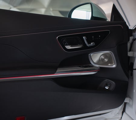 Hire in Dubai: White Sedan, 5 Seater, MBUX System, Dynamic Drive Select, Panoramic Display, Ambient Lighting