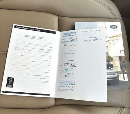 Range Rover Vogue without Super HSE, Gulf, number one, full specifications, panoramic, leather, large screen, camera, fingerprint start, blind spot, original paint, original checks, very clean, accidentfree, white car with beige interior