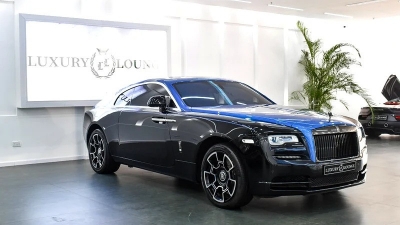 The Rolls Royce Wraith Black Badge Luxury Car is listed by Luxury Lounge L.L.C. This 2 door Luxury Car fits 4 passengers and 2 medium-sized bag(s).