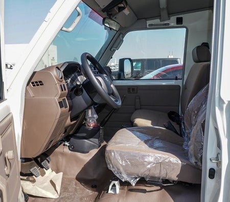 New Toyota Land Cruiser Hard Top .L V M/T for sale from Najem Motors FZE in Dubai. White model. The car has manual gearbox, cylinder engine, ″ wheels and brown interior. GCC specs.