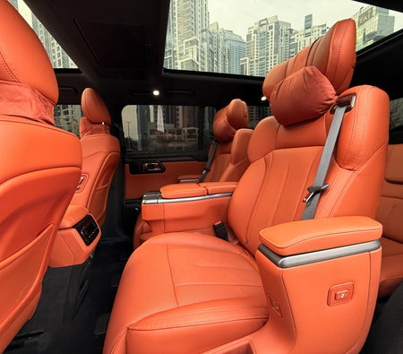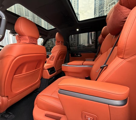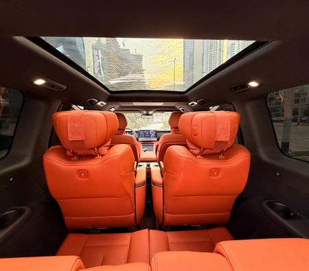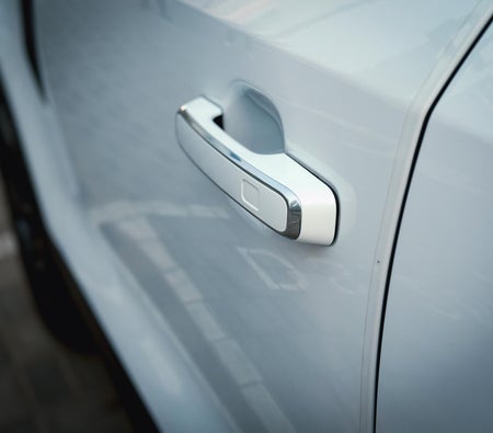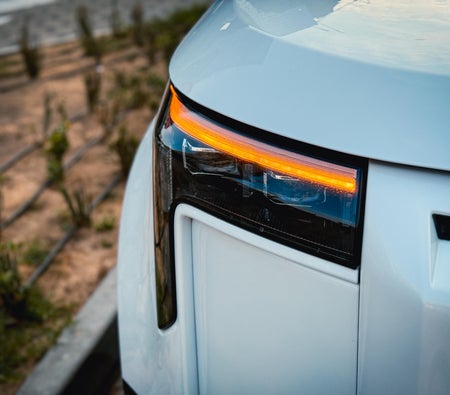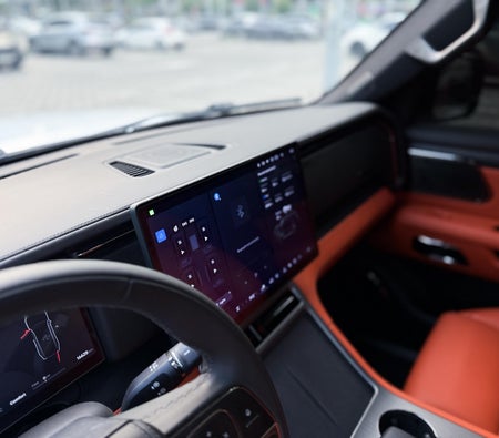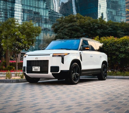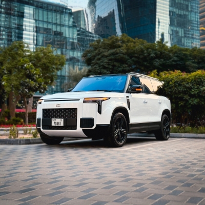 Location à Dubai : SUV hybride blanc, 7 places, intérieur spacieux, confort pour les voyages en famille, design moderne