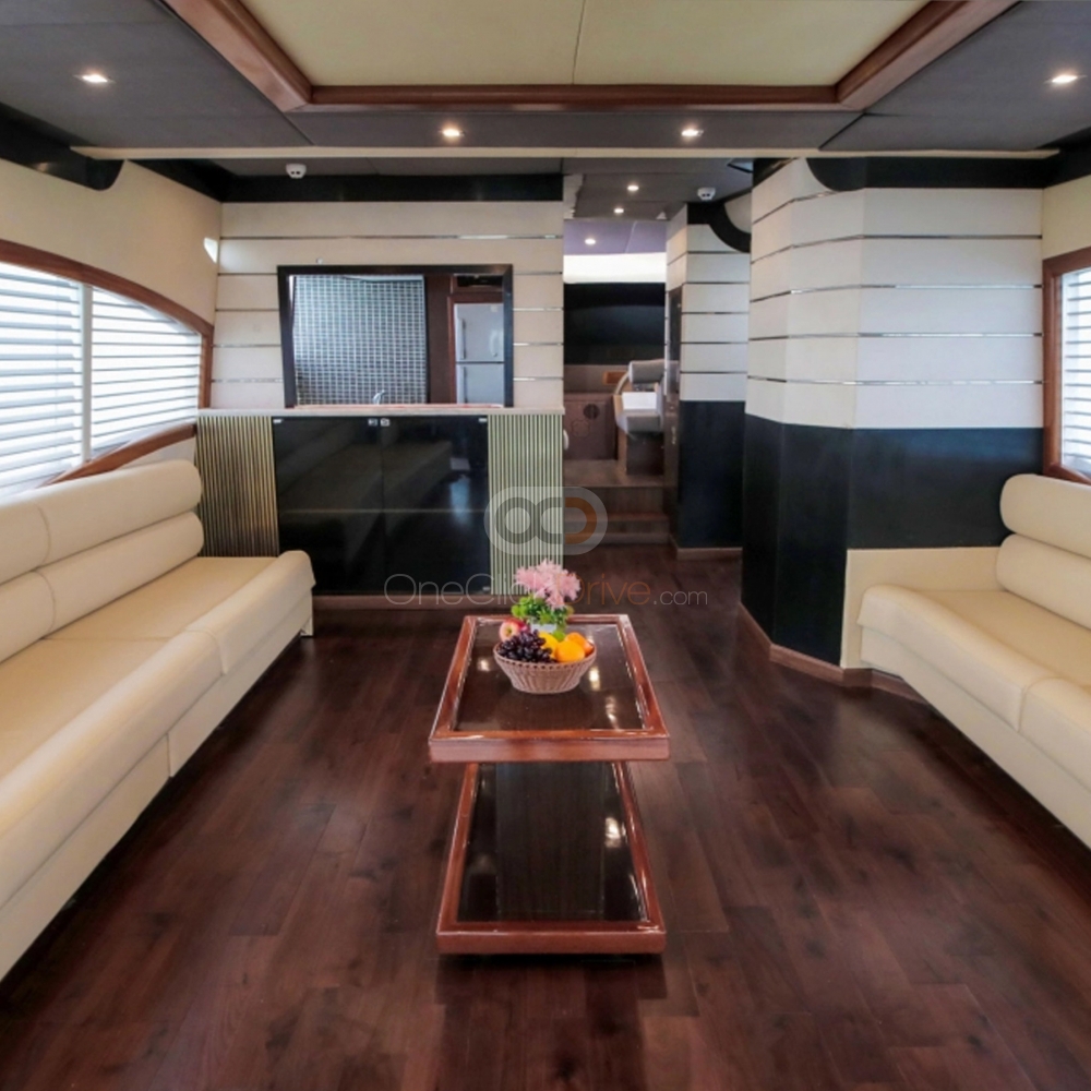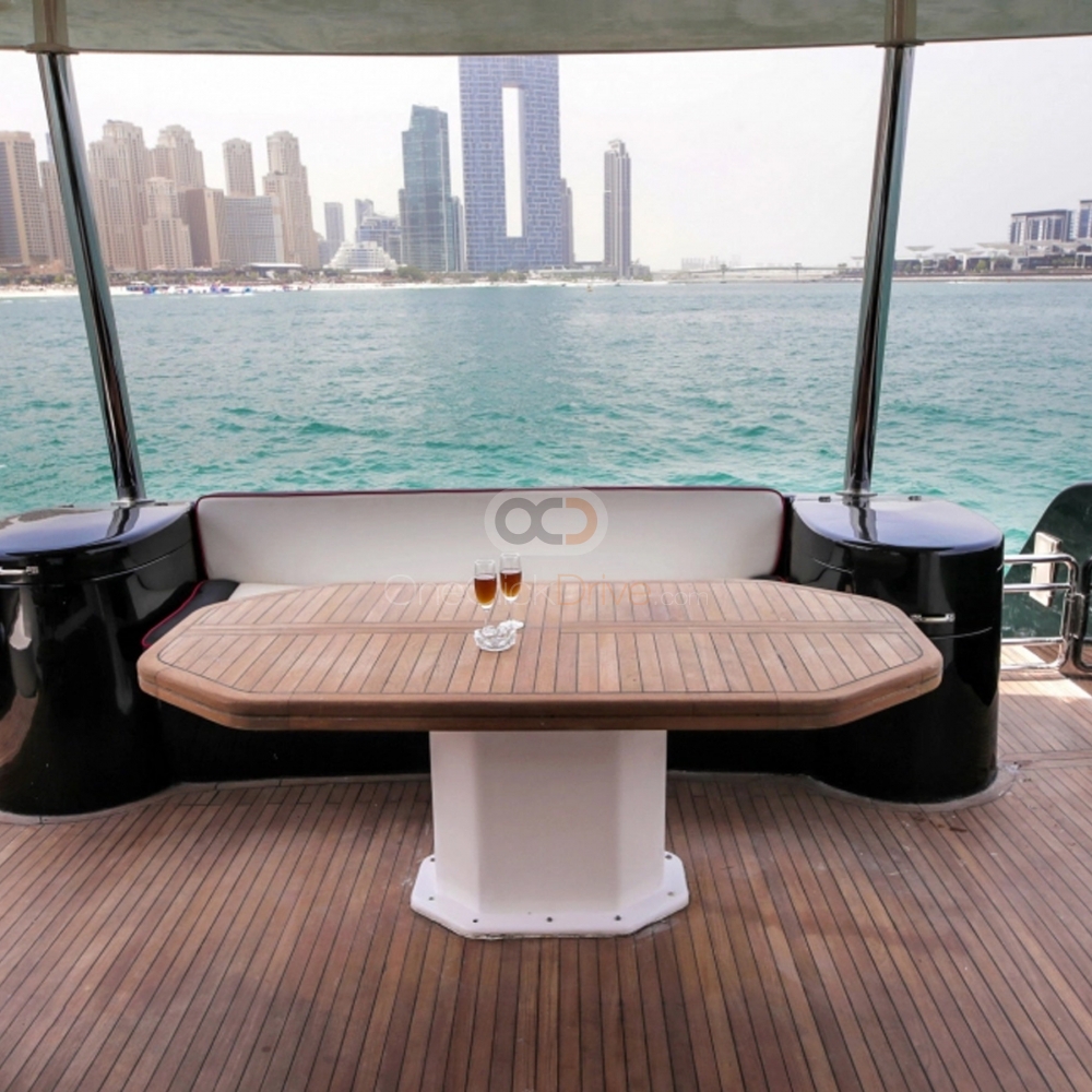 Le Yacht est conçu pour vous offrir, à vous et à vos invités, une expérience confortable et luxueuse, tout en admirant la beauté du paysage environnant et en découvrant des attractions étonnantes telles que le Burj Khalifa, l'hôtel Atlantis et le Palm Jumeirah, construit par l'homme. Avec une longueur de 95 pieds, ce yacht peut accueillir confortablement jusqu'à 50 invités. Le bateau est également doté d'un intérieur élégant, avec des sièges en peluche et beaucoup d'espace pour se déplacer et socialiser.
