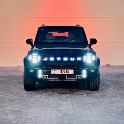 Noleggio a Dubai: SUV nero, 5 posti, design robusto e squadrato, cruscotto digitale, diverse modalità di guida, elevata altezza da terra, guida confortevole in città e fuoristrada