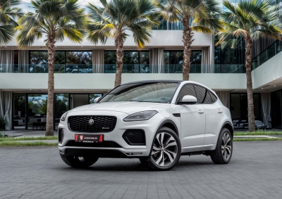 Start the engine and feel the rush of the 2021 Jaguar E-Pace, a sophisticated SUV that combines the thrilling performance of a hybrid engine with the refined luxury only Jaguar can deliver. Enjoy the seamless transition of its automatic transmission as you glide through the streets of Dubai, turning heads with its sleek, aerodynamic design. The E-Pace is equipped with the latest technology to keep you connected and entertained on every journey,
