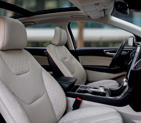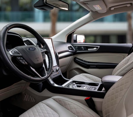 Ford Edge is een ongelooflijk capabele crossover. De standaard 3,5 liter Ti-VCT V6-motor produceert 285 pk en verbruikt slechts 8,7 liter per 100 km hwy, zodat je elke rit kunt maximaliseren. De Ford Edge biedt u de revolutionaire, geheel nieuwe, beschikbare MyFord Touch driver connect-technologie — aangedreven door de nieuwste versie van ons bekroonde Ford SYNC®-systeem waarmee u kunt bellen en gebeld kunt worden en muziek kunt selecteren, allemaal met spraakopdrachten. Ruimte is een goede zaak. Vooral op de snelweg. Adaptieve cruisecontrol en botsingswaarschuwing met remondersteuning maken gebruik van radarsensoren om uw keuze uit 4 vooraf ingestelde afstanden tussen uw Edge en het voertuig voor u te behouden. Het maakt ook gebruik van diezelfde sensoren aan de voorkant om u te waarschuwen voor een mogelijke botsing. Als er een wordt gedetecteerd, flitst het een waarschuwing over uw voorruit en klinkt er een alarm, zodat u extra tijd heeft om te remmen. Huur hier Ford Edge Dubai van alle toonaangevende autoverhuurbedrijven.