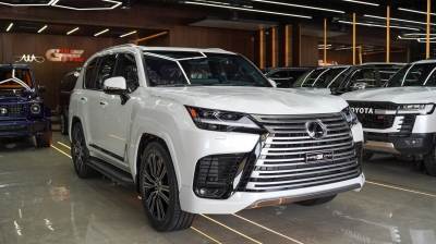 de Lexus LX600 SUV wordt vermeld door Najem Motors FZE. Dit 4 deur- SUV past bij 7 passagiers en 2 middelgrote zak(ken).
