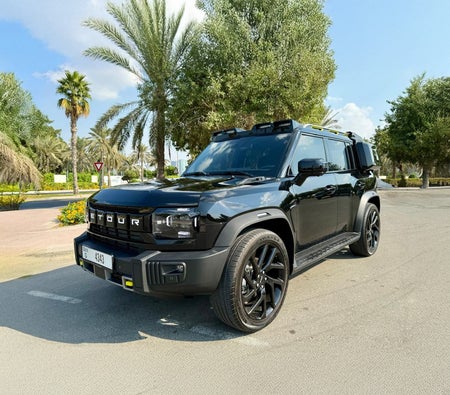 The Jetour T2 SUV tarafından listelenir Rimal Al Tareeq Araç Kiralama. Bu 4 kapı SUV nöbetleri 5 yolcular ve 2 orta boy çanta(lar).