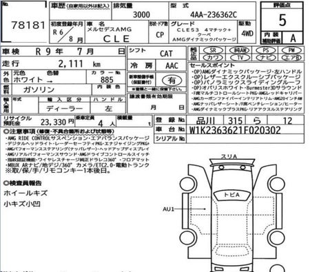 The Mercedes Benz CLE 53 kup tarafından listelenir Japonya Motorları FZCO. Bu 2 kapı kup nöbetleri 4 yolcular .