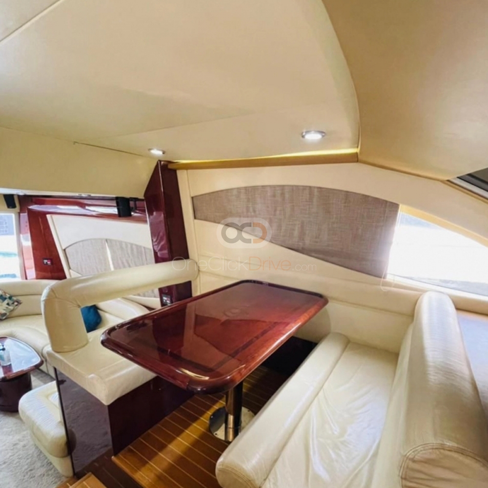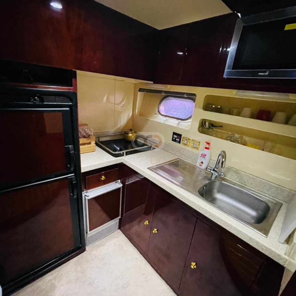 Yat çevredeki manzaranın güzelliğini seyrederken ve yüksek Burj Khalifa, Atlantis Hotel ve insan yapımı Palm Jumeirah gibi muhteşem turistik mekanları keşfederken siz ve misafirleriniz için konforlu ve lüks bir deneyim sunmak üzere tasarlanmıştır. Uzunluğu ile 52 ayaklar, bu yatta rahatça konaklayabilir 18 Misafirler. Tekne aynı zamanda rahat bir oturma alanı ve hareket etmek ve sosyalleşmek için geniş bir alana sahip, zarif bir şekilde döşenmiş bir iç mekana sahiptir.